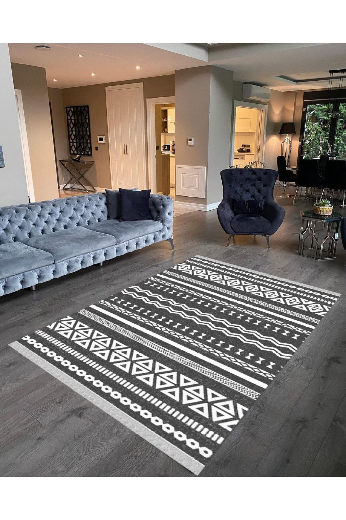 Polyester malzeme kullanımı sayesinde uzun ömürlü ve dayanıklı bir yapıya sahip; Pamuk tabanı ile doğal bir dokunuş sunar ve zeminde kaymayı önler; Dikdörtgen şekli, çeşitli oda düzenlemelerine kolayca uyum sağlar; Yıkanabilir özelliği ile pratik temizlik imkanı sunar, böylece hijyenik bir kullanım sağlar; Modern tasarımıyla mekanınıza şık ve çağdaş bir görünüm katar; Makine halısı üretim tekniği ile yüksek kalitede üretilmiştir;