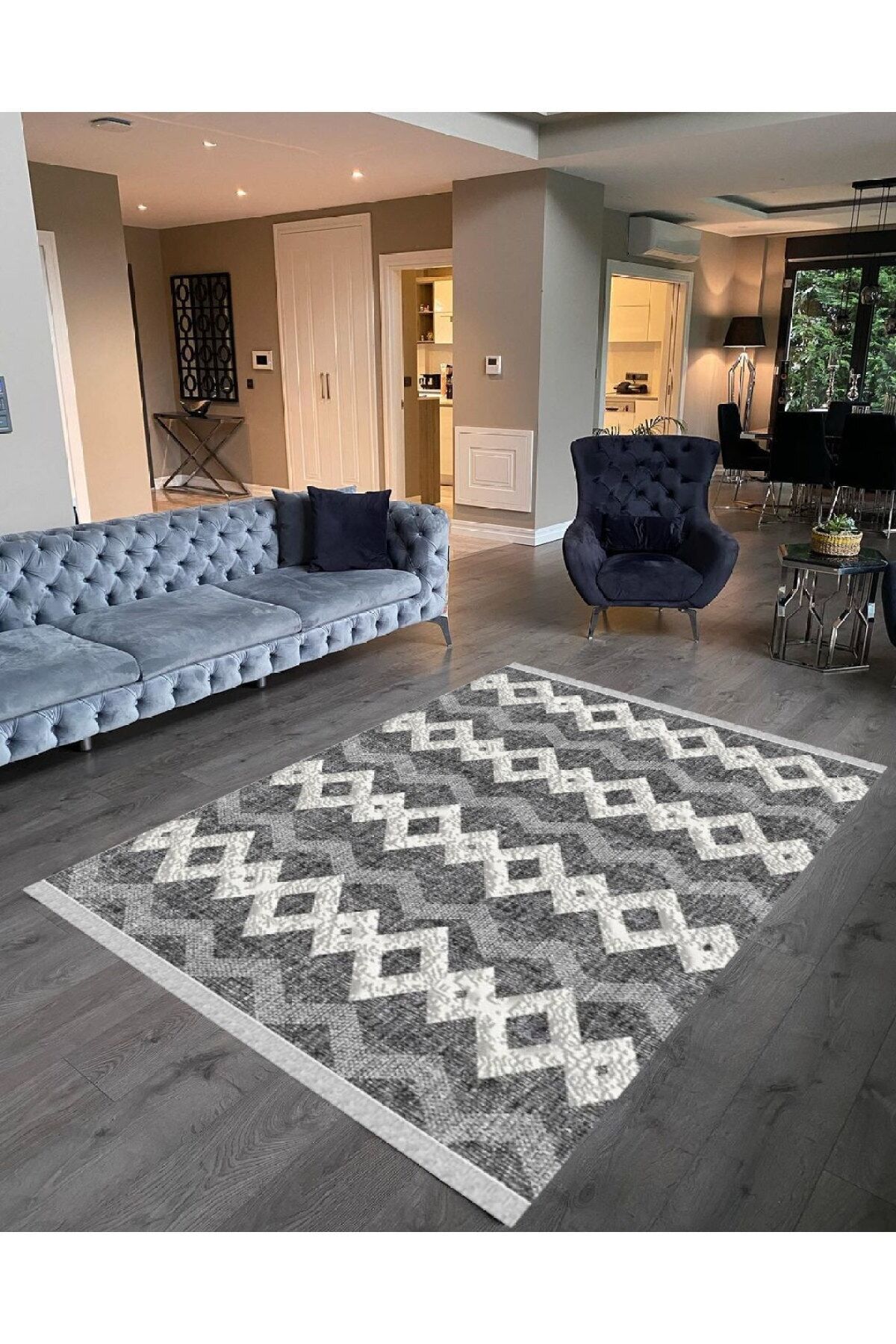 Pamuk tabanı sayesinde zeminde kayma yapmayan ve güvenli bir kullanım sunar; Polyester materyali ile uzun ömürlü ve dayanıklı bir yapıya sahiptir; Kolay temizlenebilir özelliği ile pratiklik sağlar; yıkanabilir olması sayesinde hijyenik bir ortamın korunmasına yardımcı olur; Makine halısı üretim tekniği ile üretilmiş olup, modern ve şık bir görünüm kazandırır; Modern tema ve stil anlayışına uygun tasarımıyla mekanınıza çağdaş bir hava katar; Dikdörtgen şekliyle farklı alanlarda kolayca uyum sağlar ve mekânın estetiğini tamamlar;