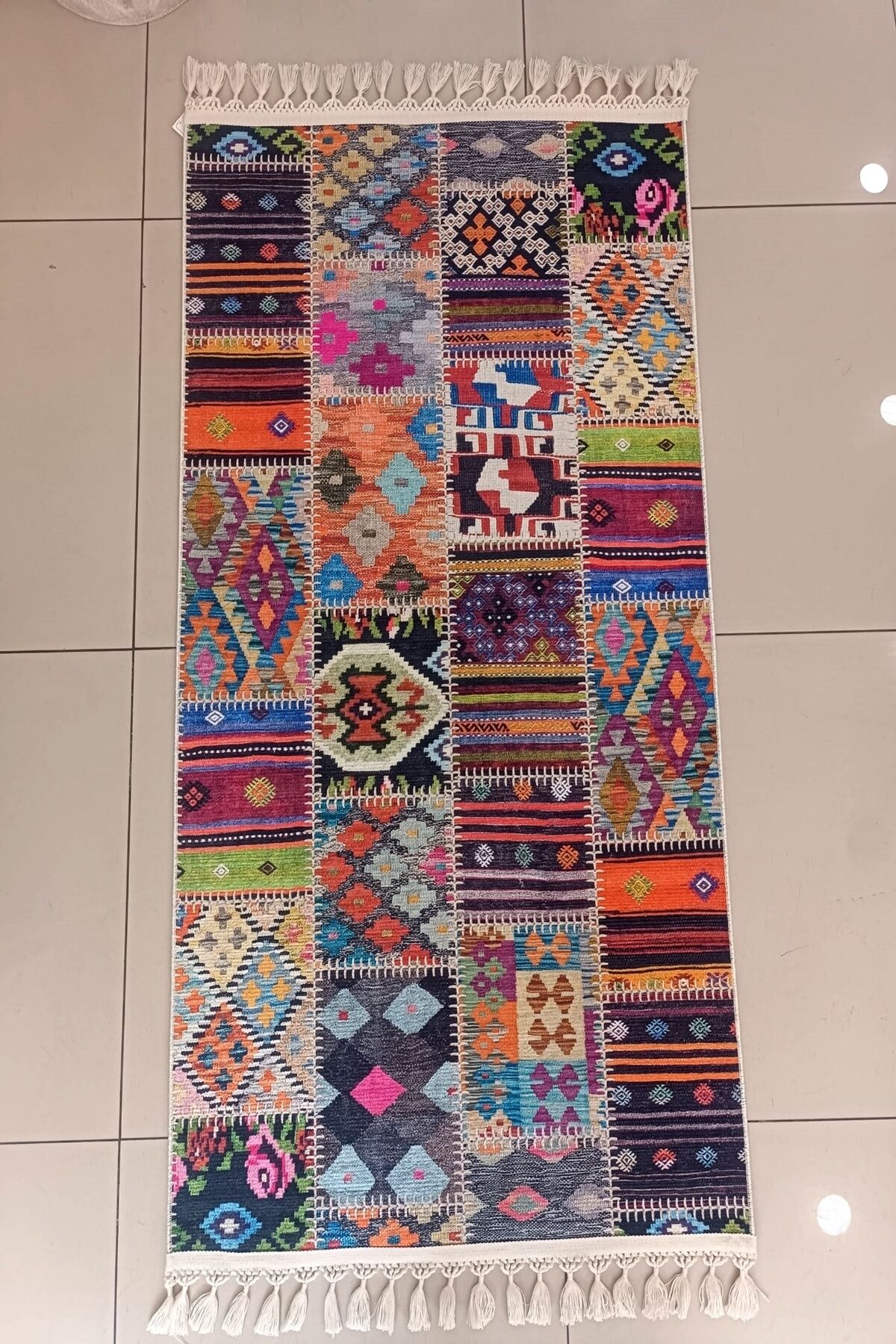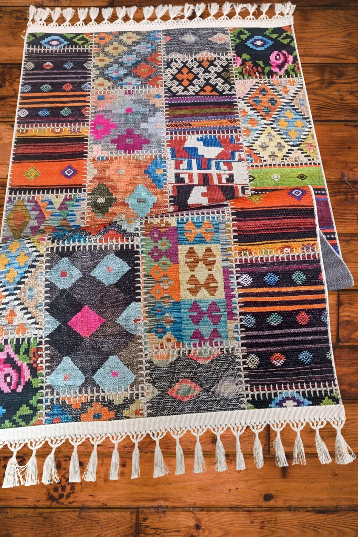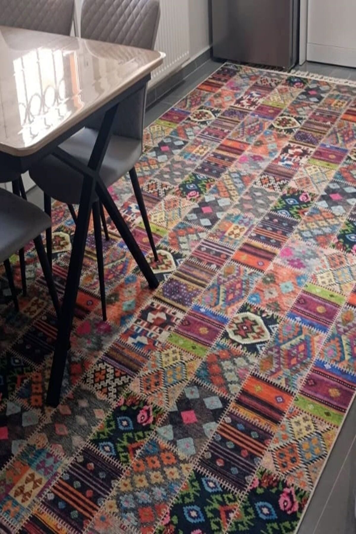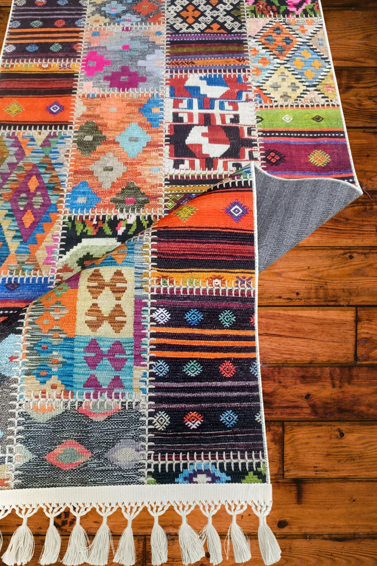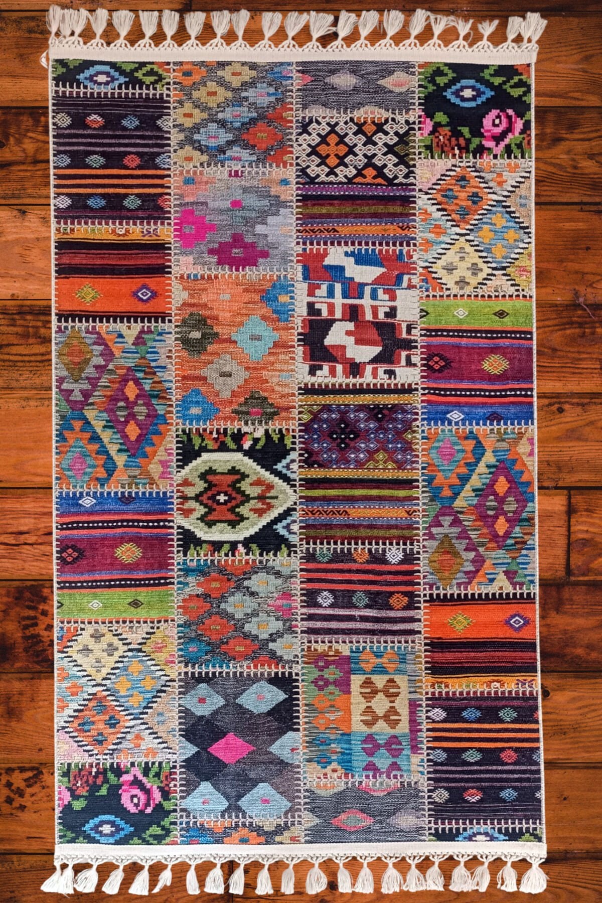 Etnik desenleriyle dikkat çeken Decoser delüx 4015, salon ve oturma odanızın atmosferini zenginleştirir; Örgü saçak detayları ile modern ve şık bir görünüm sunar; Dikdörtgen şekli sayesinde çeşitli mekanlarda kolayca uyum sağlar; Pamuk tabanı ile konforlu bir dokunuş ve yumuşak bir his sunar; Yıkanabilir özelliği sayesinde pratik kullanım imkanı sağlar; leke ve kirler kolayca temizlenir; Dijital baskı teknolojisi ile üretilmiş deseni, canlı ve net renklerle uzun süre solma yapmadan kalır; Patchwork deseniyle modern ve dinamik bir dekoratif unsur olarak mekanınıza enerji katar; İnce hav yüksekliği (6 mm altı) ile hafif ve kolay taşınabilirlik sunar, yer kaplamaz; Pamuk ve polyester karışımından oluşan materyal bileşeni, dayanıklılığı artırırken yumuşaklığı korur; Type 1 yıkama talimatına uygun şekilde bakım yapıldığında uzun ömürlü kullanım vaat eder;