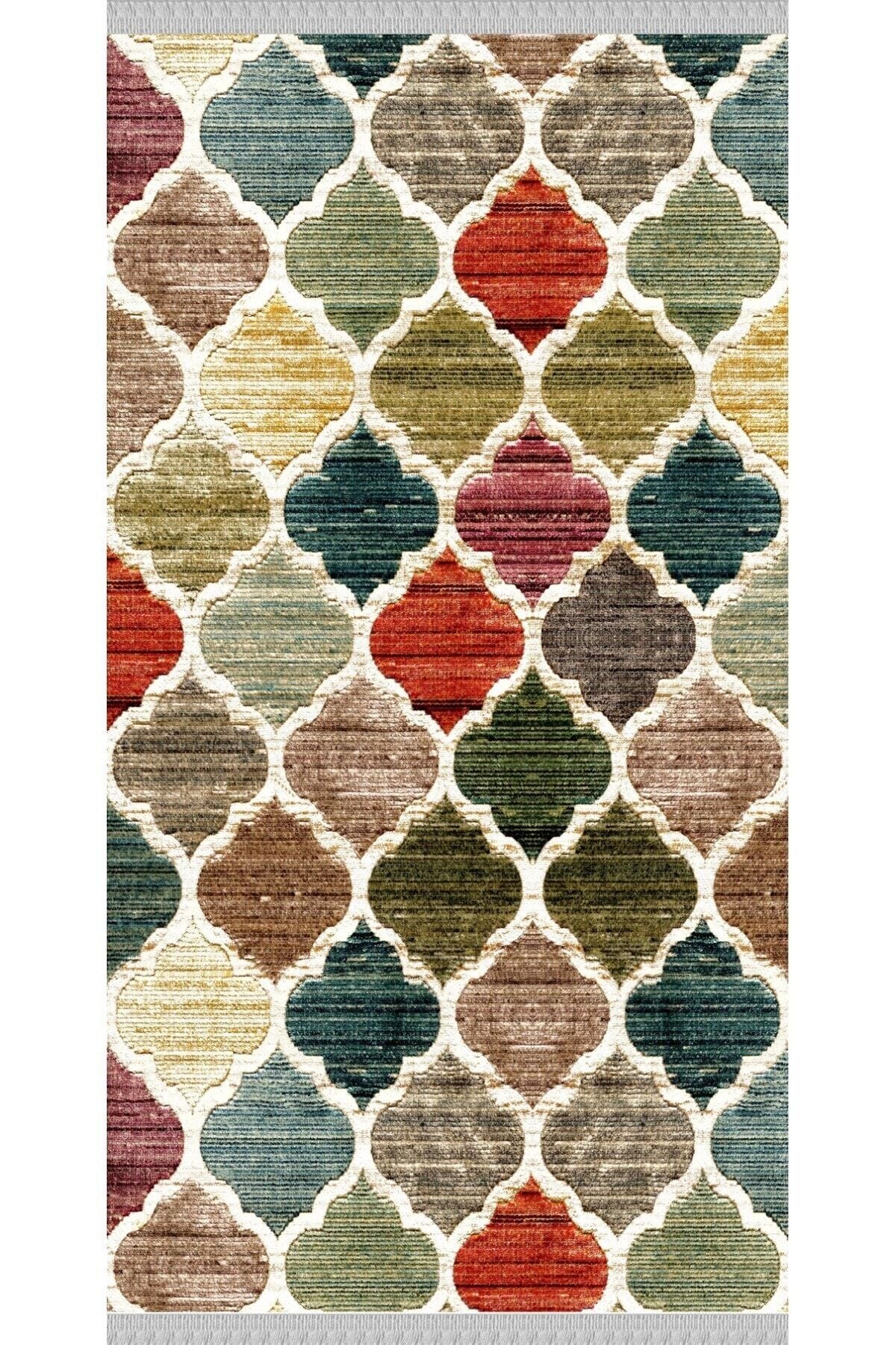 Dokuma taban yapısı sayesinde zeminde kayma yapmaz ve güvenli bir kullanım sunar; Dijital baskı teknolojisi ile üretilmiş canlı ve net desenler, mekanınıza modern bir dokunuş katar; Kolay temizlenebilir özelliği ile pratiklik sağlar; yıkama talimatlarına uygun şekilde yıkanabilir olması, hijyenik bir kullanım imkanı sunar; Dikdörtgen şekliyle çeşitli oda düzenlemelerine uyum sağlar ve mekânın estetiğini tamamlar; Polyester materyali sayesinde uzun ömürlü kullanım vaat ederken, kolay bakım avantajları ile de öne çıkar;
