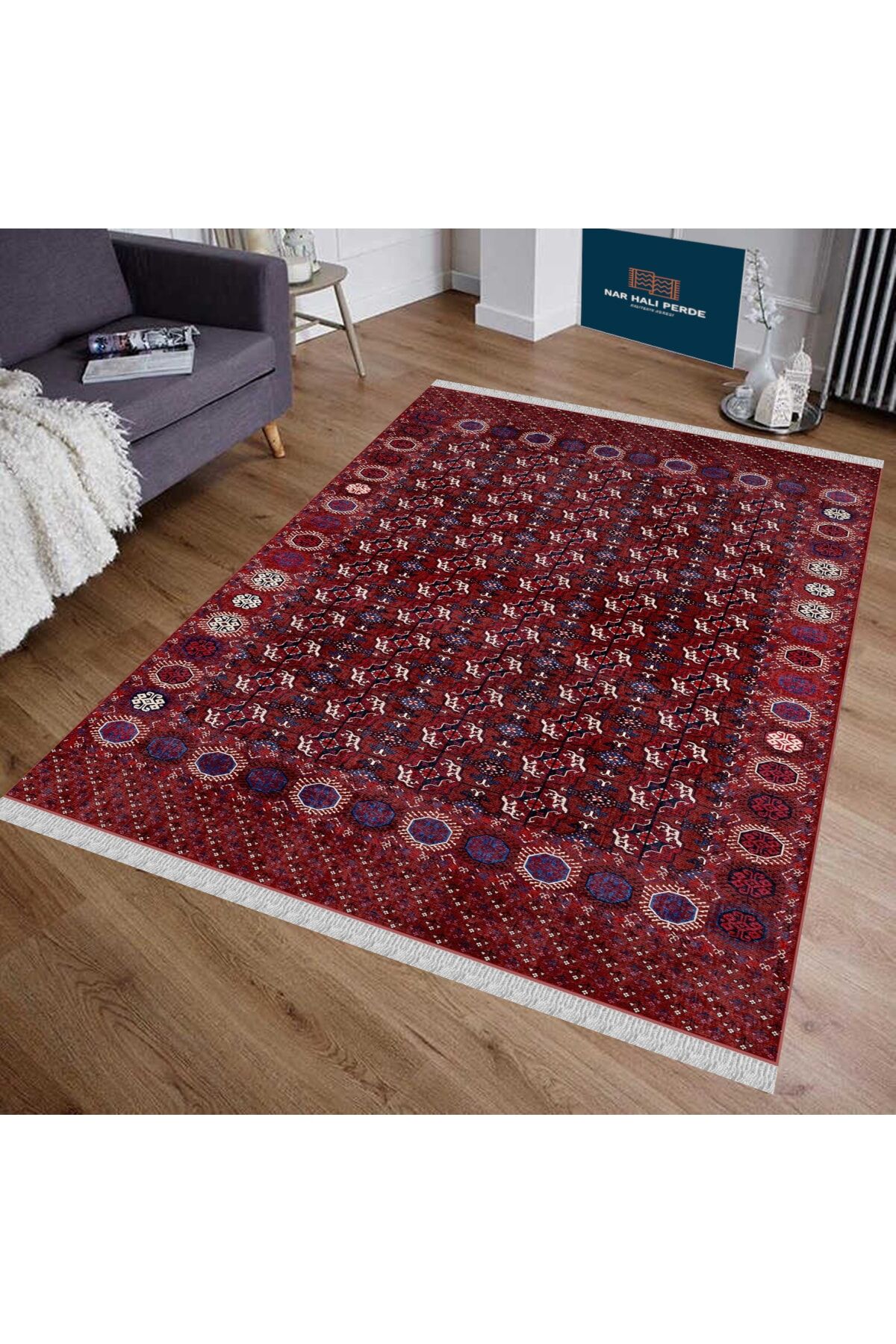 Dikdörtgen formu ile modern ve şık bir görünüm sunar, mekanınıza kolayca uyum sağlar; Polyester materyali sayesinde uzun ömürlü kullanım ve dayanıklılık vaat eder; Dokuma tabanı ile zeminde kayma yapmaz, güvenli bir kullanım sunar; Yıkanabilir özelliği ile pratik temizlik imkanı sağlar; leke ve kirler kolayca temizlenir; Type 1 yıkama talimatına uygun şekilde temizlenmesi, kilimin bakımının kolay ve zahmetsiz olmasını sağlar; Dijital baskı teknolojisi ile üretilmiş canlı ve net desenler, otantik bordo rengiyle mekanınıza sıcaklık katar;