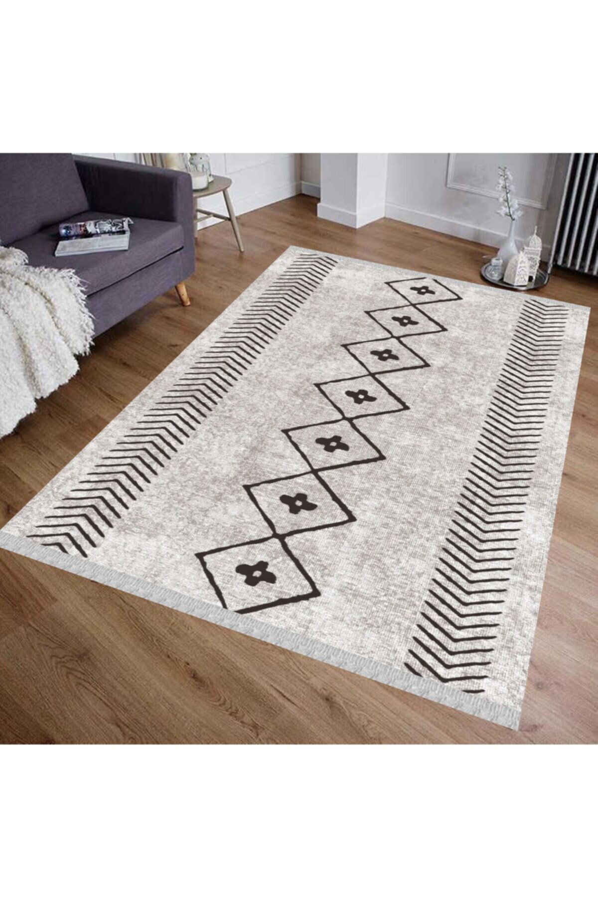 İskandinav esintili gri siyah deseni ile modern ve şık bir görünüm sunar.; Pamuk taban özelliği sayesinde doğal ve yumuşak bir dokunuşa sahiptir, ayaklarınızın konforunu artırır.; Yıkanabilir olması, leke tutmayan yapısıyla kolay temizlenebilirliği sağlar; böylece halınız her zaman yeni gibi kalır.; İskandinav desenleri ile evinizin dekorasyonuna modern ve minimalist bir hava katar.; Gri ve siyah tonların uyumu, her türlü iç mekan tasarımına kolayca uyum sağlayarak mekânınıza sofistike bir hava verir.;
