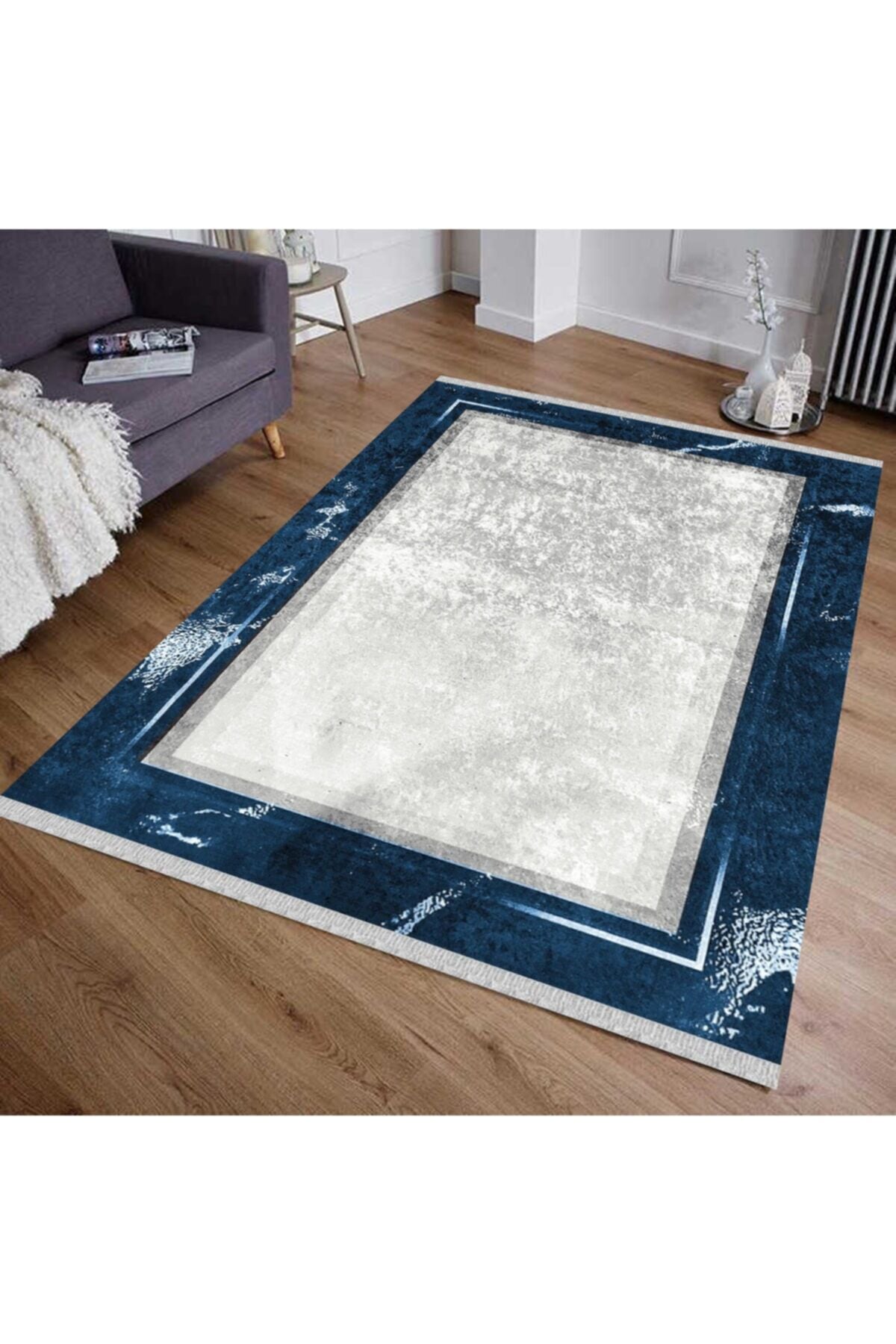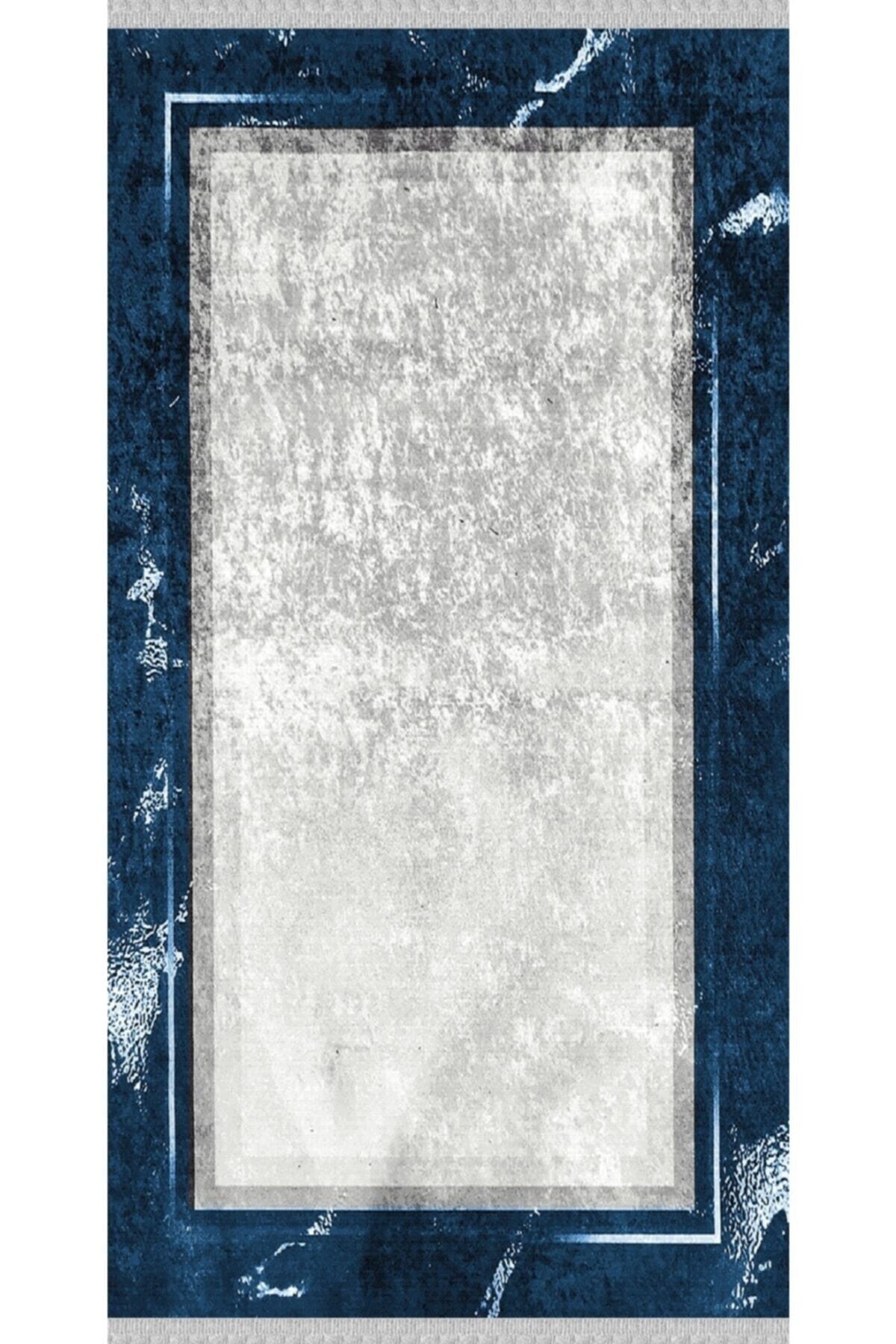 Yıkanabilir özelliği sayesinde, leke ve kir tutmayan yapıya sahip olan mavi çerçeveli kilim, kolay temizlenebilirlik sunar.; Modern tasarımı ile evinizin dekorasyonuna şık bir dokunuş eklerken, mavi çerçeveleriyle göz alıcı bir estetik sergiler.; Halının yıkanabilir olması, uzun süreli kullanım için idealdir ve hijyenik kalmasını sağlar; böylece sık temizlik gerektiren alanlarda tercih edilebilir.; Yumuşak dokusuyla ayaklarınızın altında rahatlıkla hareket etmenizi sağlar ve konforlu bir zemin kaplama deneyimi sunar.; Mavi çerçeveleriyle dikkat çekici bir görünüm kazanan bu kilim, yaşam alanlarınıza modern bir hava katar.;